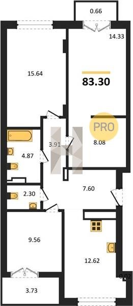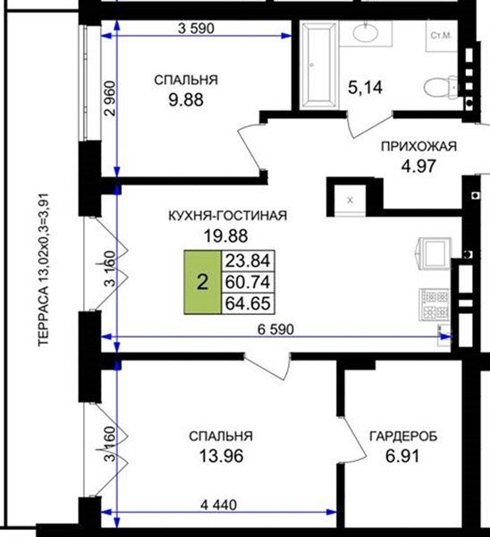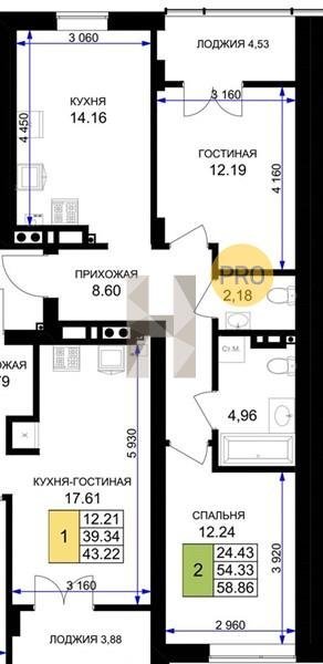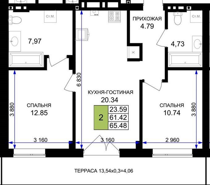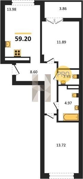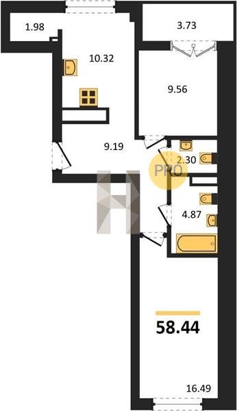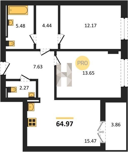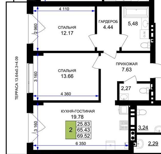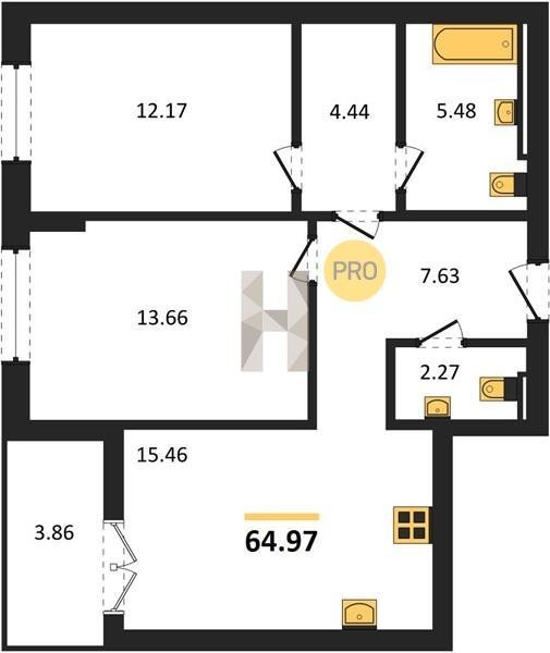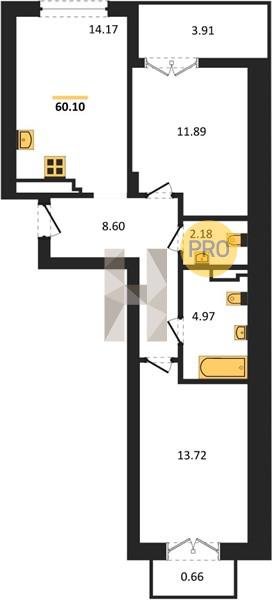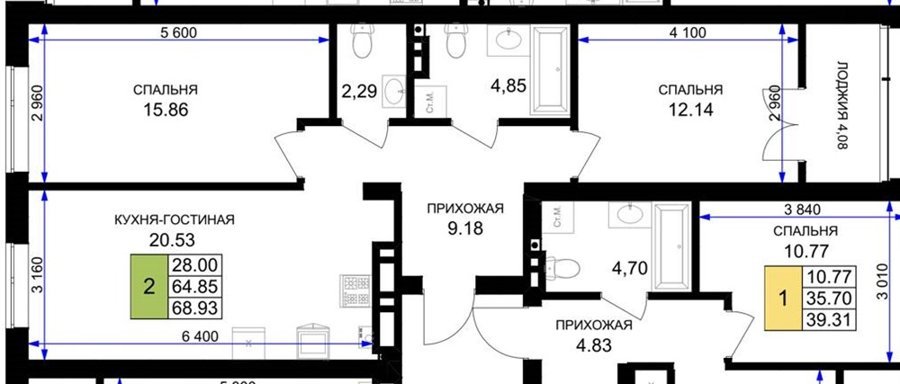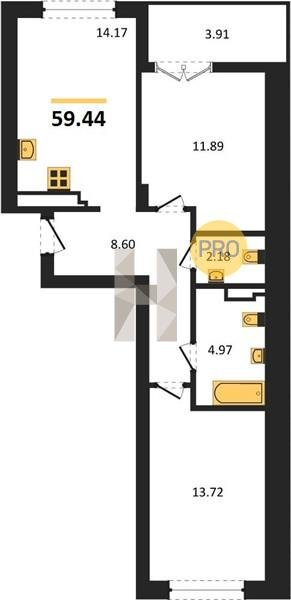 Площадь от 56.43 м2