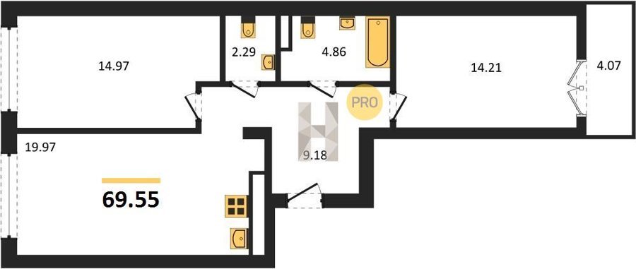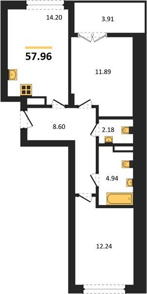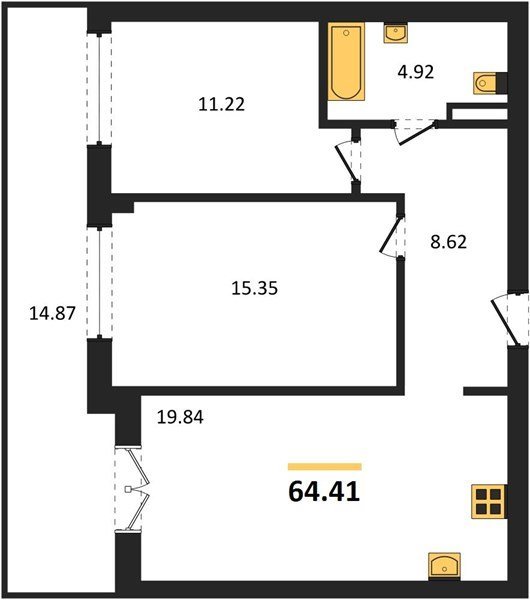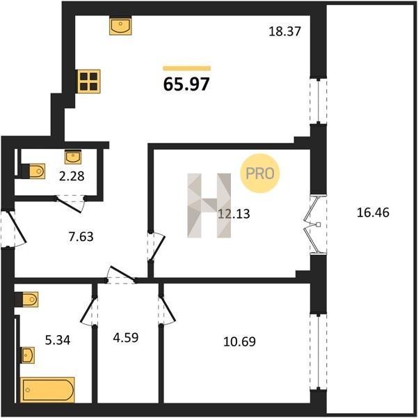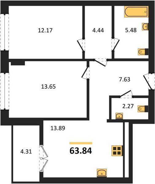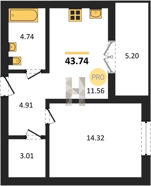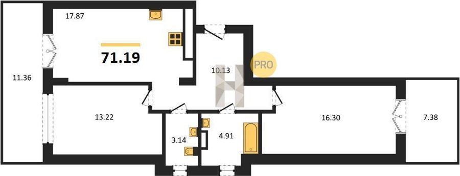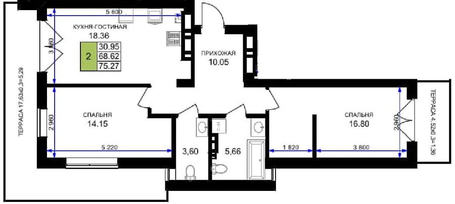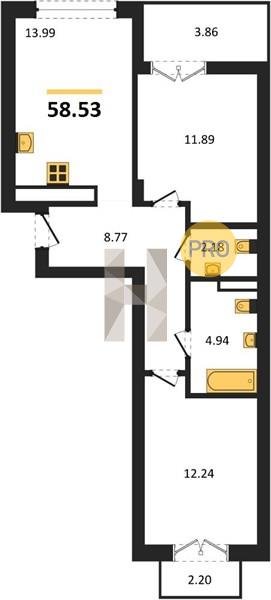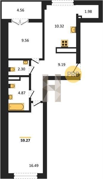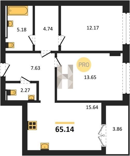 Площадь от 56.43 м2