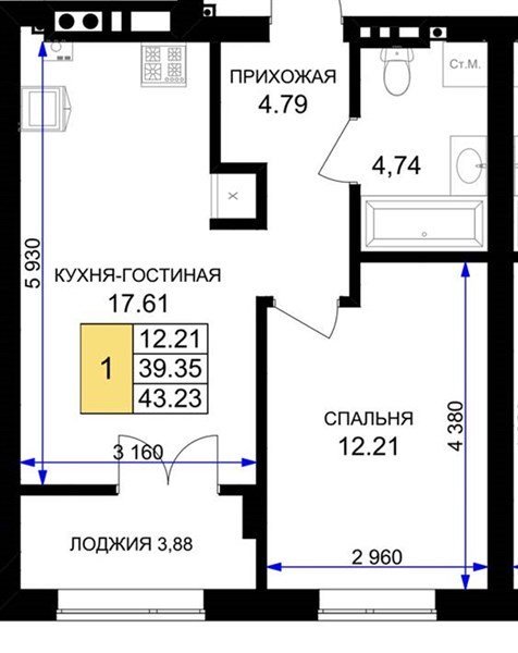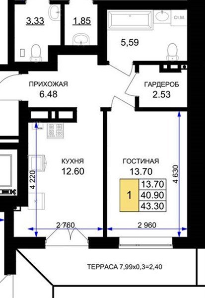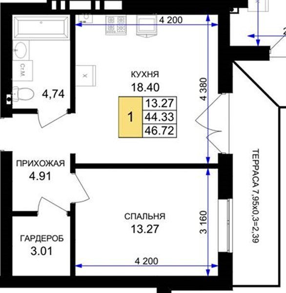 1 комнатная