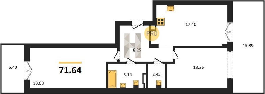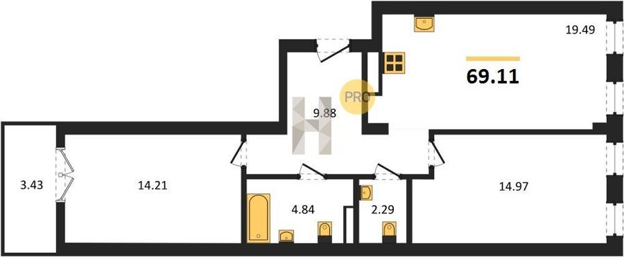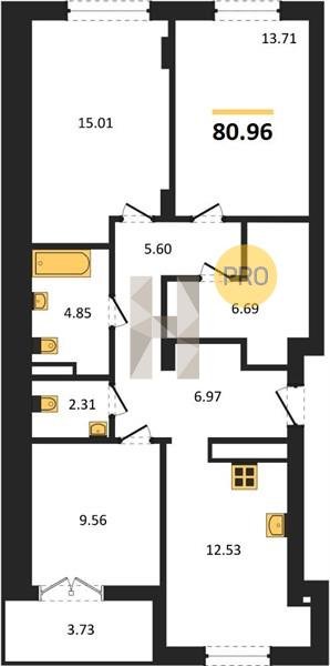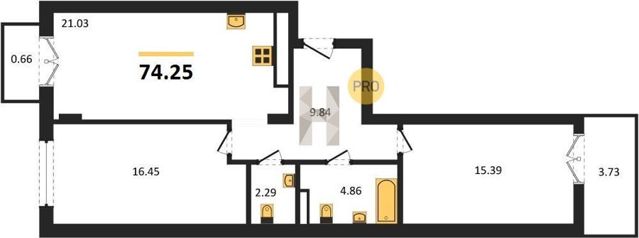 Площадь от 73.49 м2