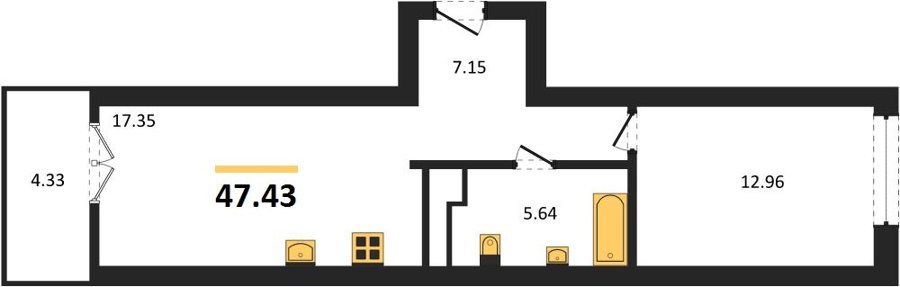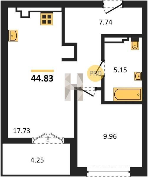 Площадь от 42.25 м2