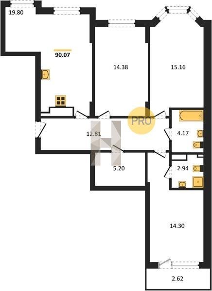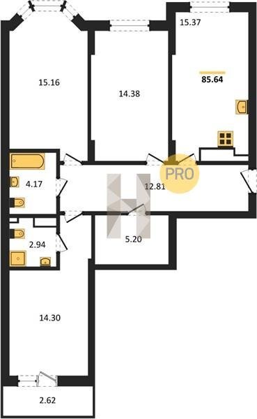 Площадь от 84.02 м2