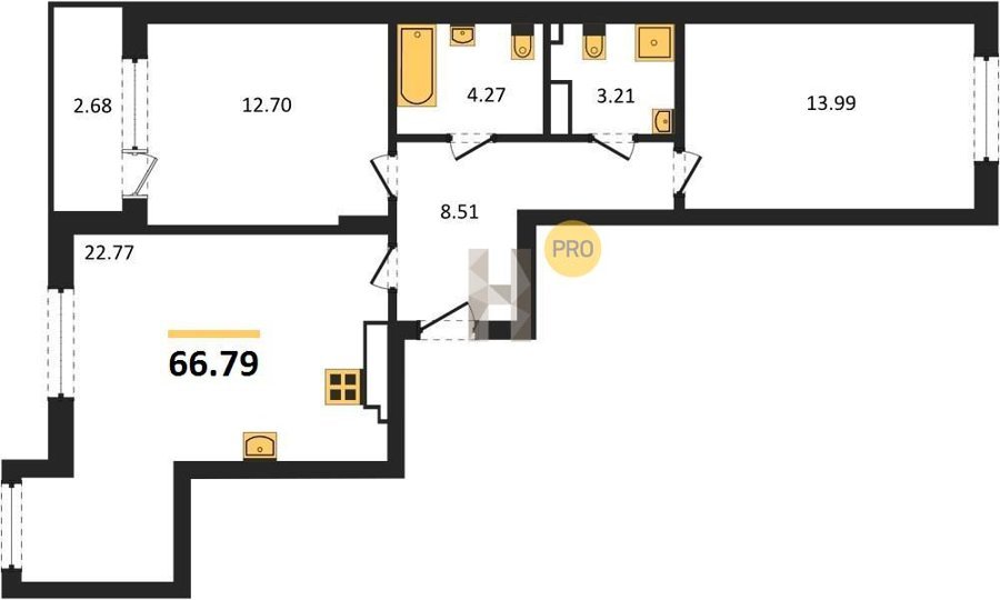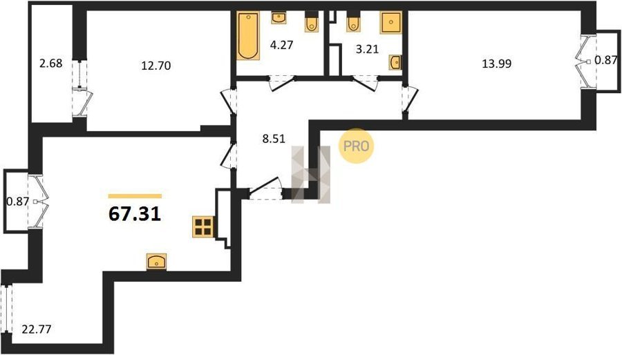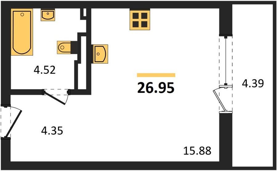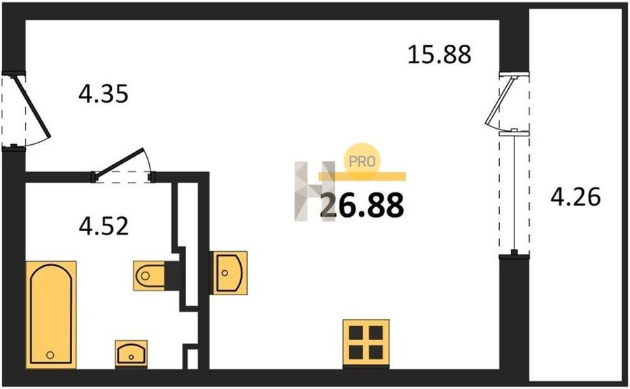 Площадь от 25.74 м2