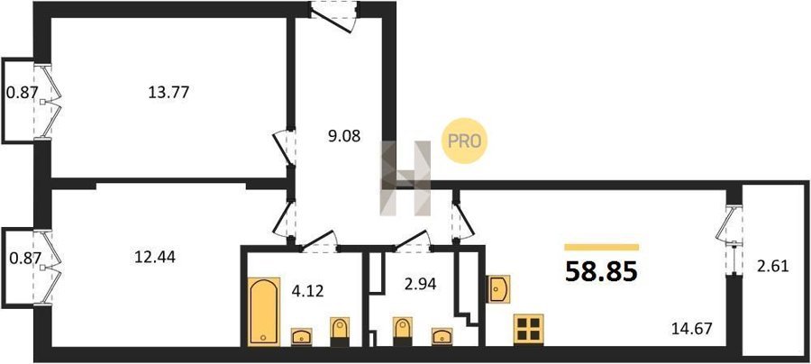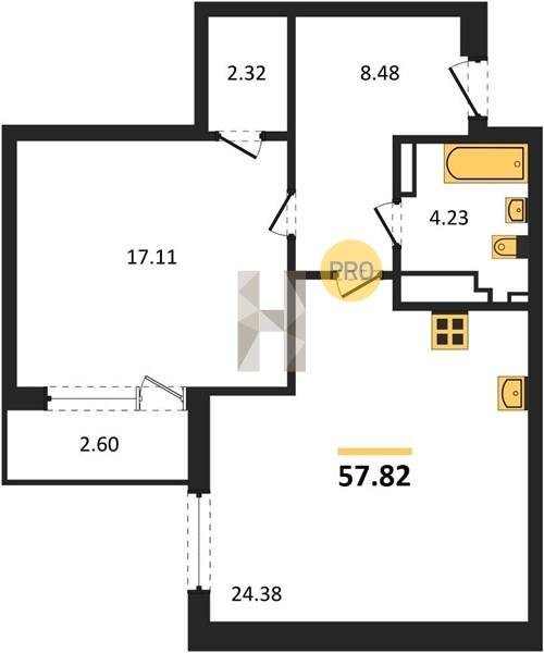 Площадь от 58.33 м2