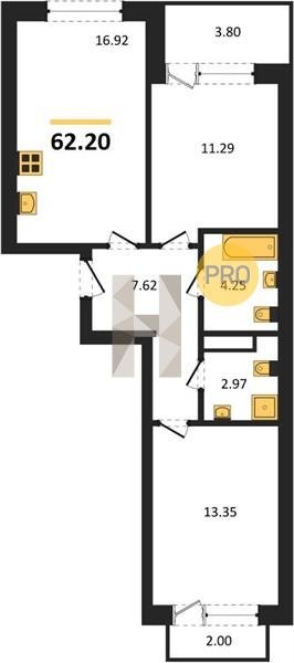 Площадь от 62.2 м2