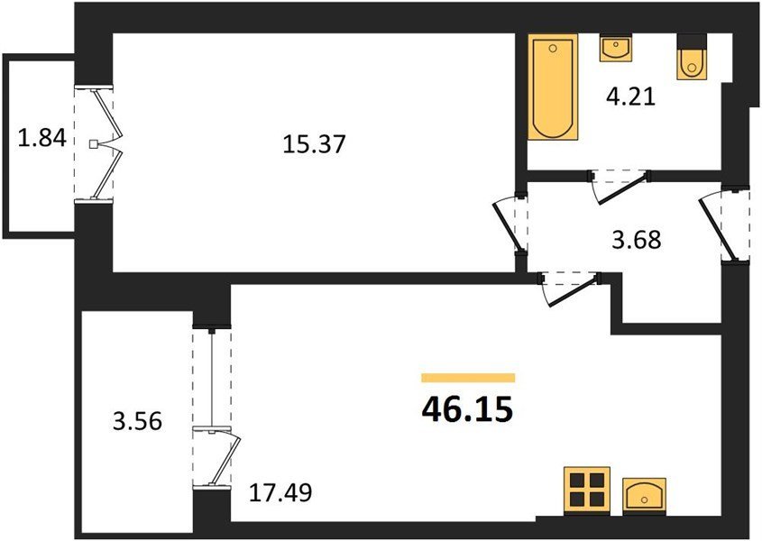 Площадь от 23.8 м2