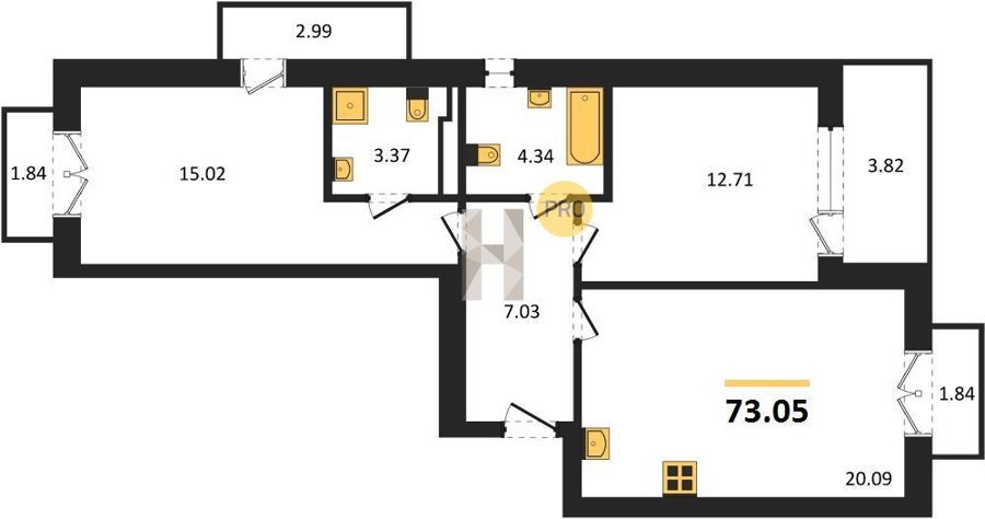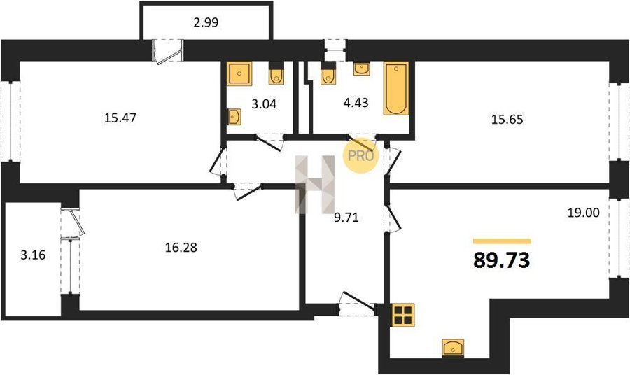 Площадь от 86.74 м2