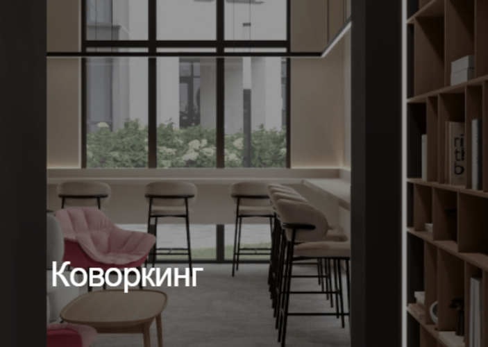 Предусмотрено рабочее пространство на территории и внутри комплекса с розетками и WiFi, где удобно быть на «удалёнке». Коворкинг - идеальное место, где можно уединиться для продуктивной работы или деловых встреч.