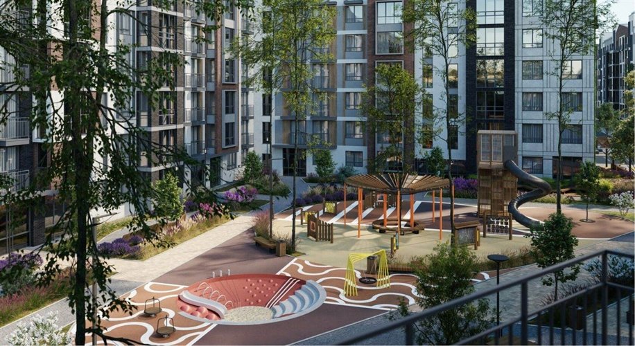Школы, сады. Двор без машин, современная детская площадка. Территория для выгула питомцев. Зона для барбекю. Закрытые колясочные. Коворкинг с wi-fi. Комната матери и ребенка.