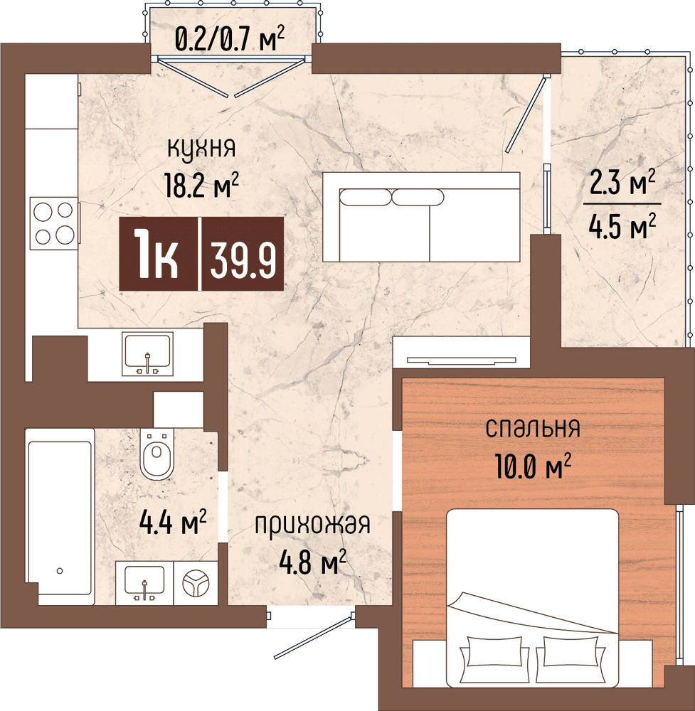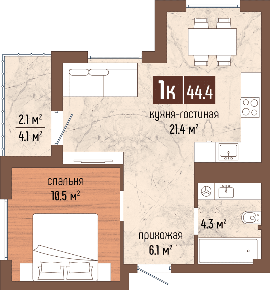 1- комнатные