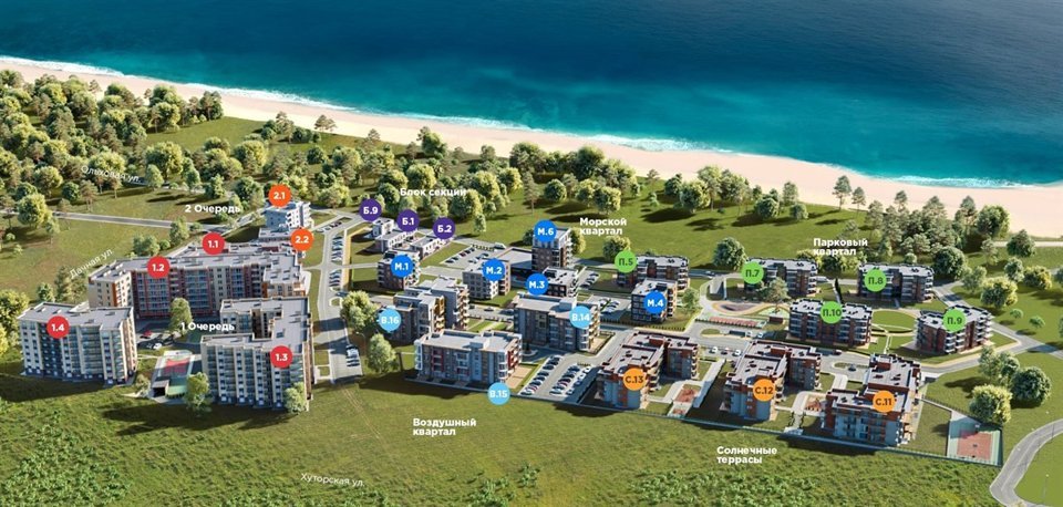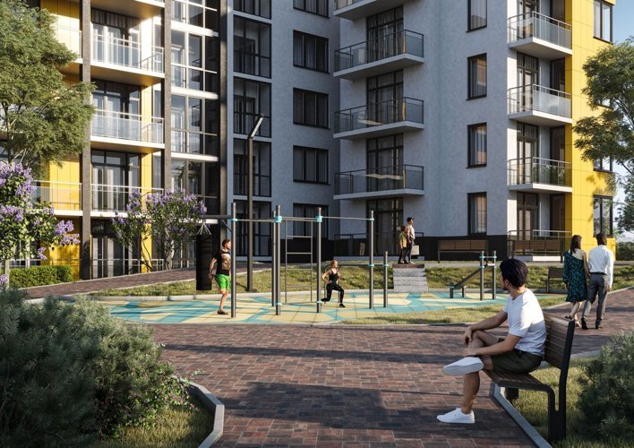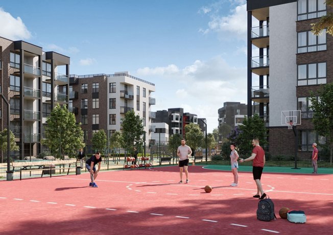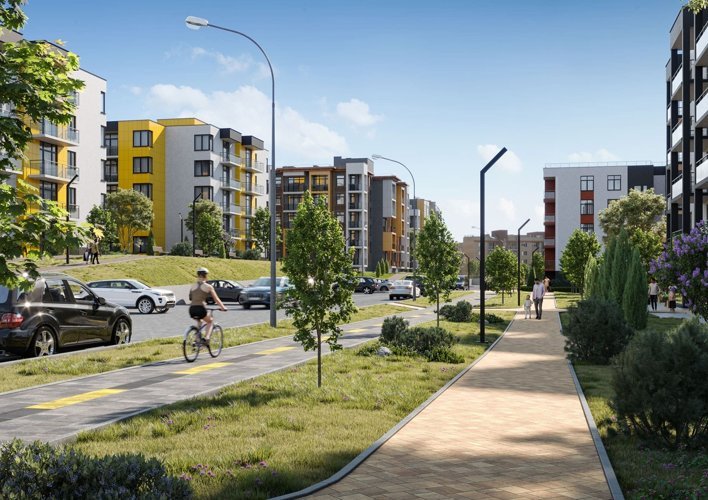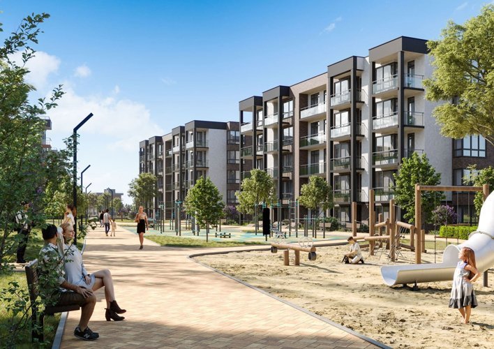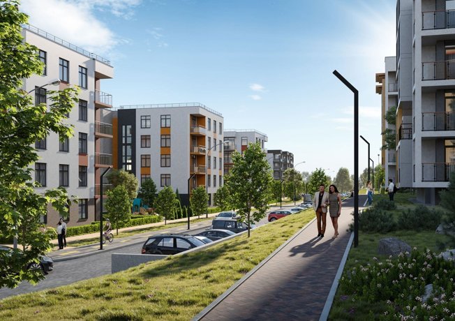 Красивые фасады с витражным остеклением балконов. Множество деревьев и зеленых насаждений на территории благоустроенного жилого квартала. Для детей обустраиваются современные и безопасные детские и спортивные площадки, велосипедные прогулки можно будет совершать по специальным дорожкам. Для вас и ваших гостей оборудованы парковки. Озеленением комплекса занимаются ландшафтные дизайнеры. Обеспечит новоселам максимальный уровень комфорта и удобства в экологически чистая загородная зона.