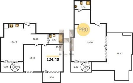 Площадь от 124.4 м2