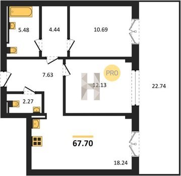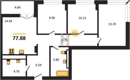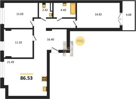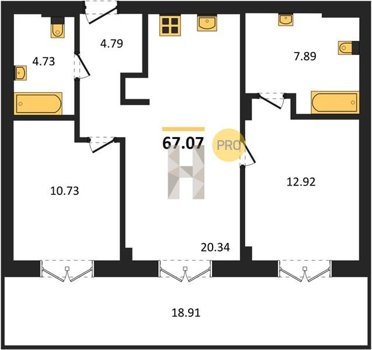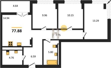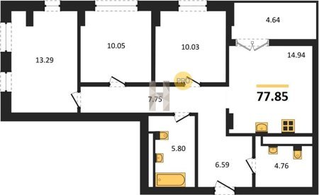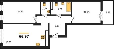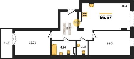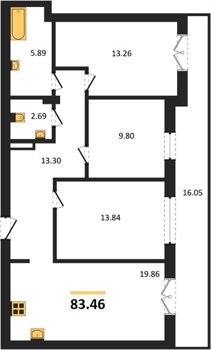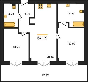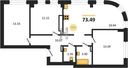 Площадь от 73.49 м2