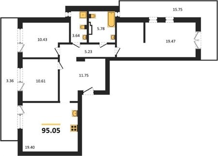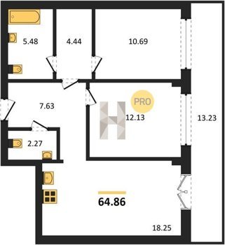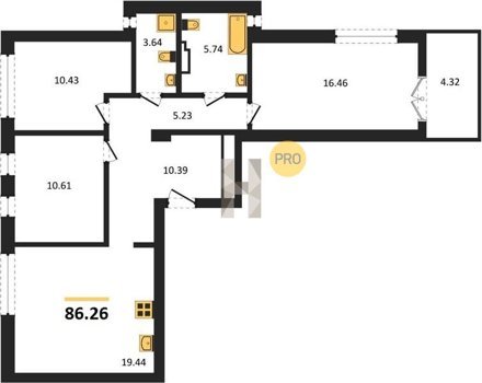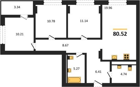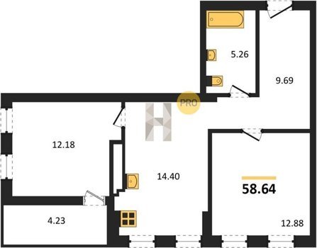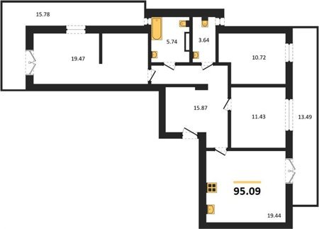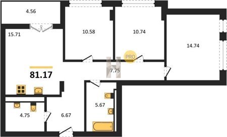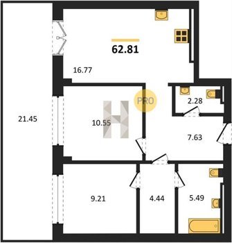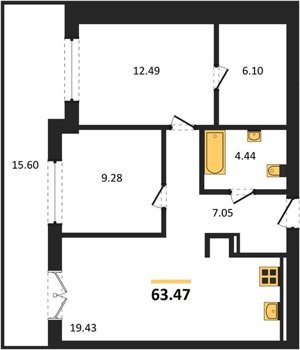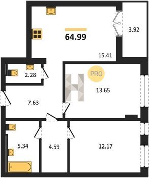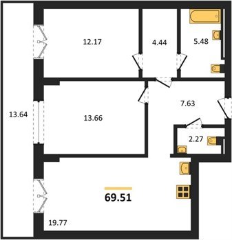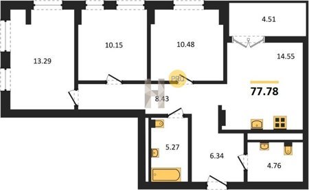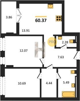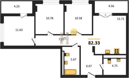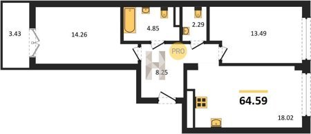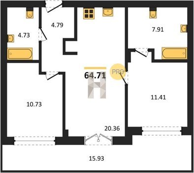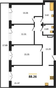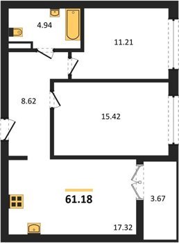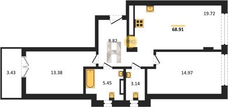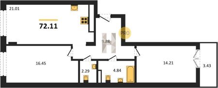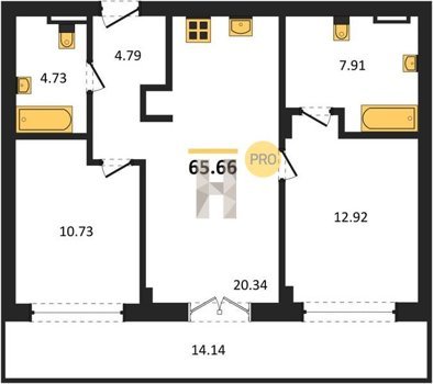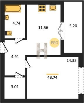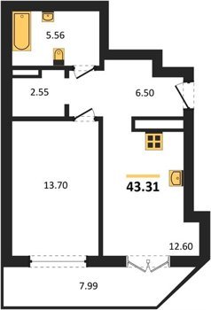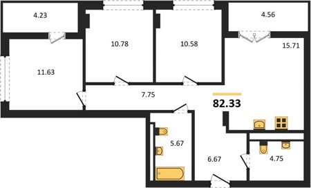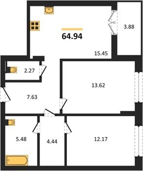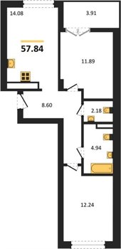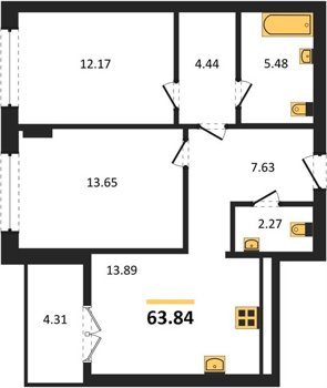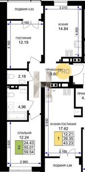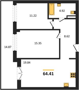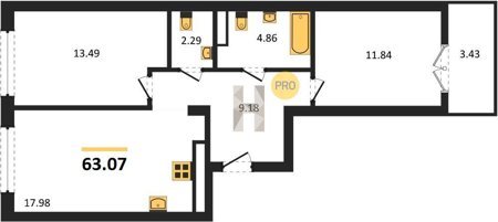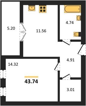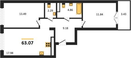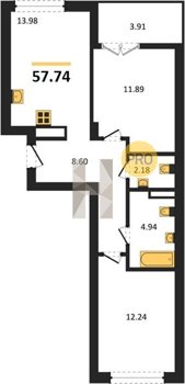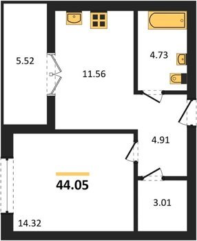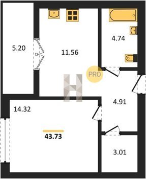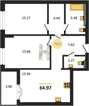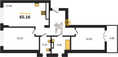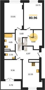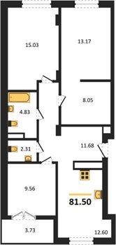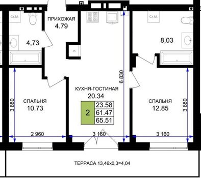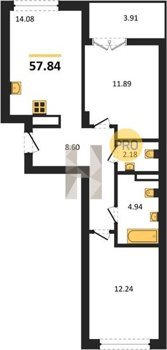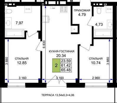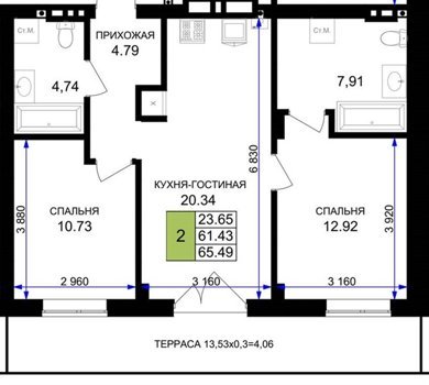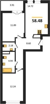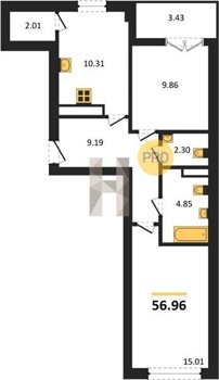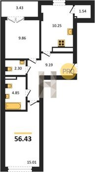 Площадь от 56.43 м2