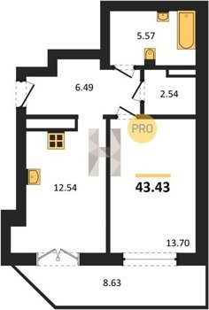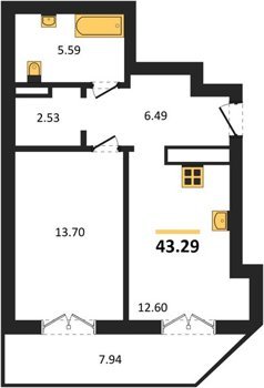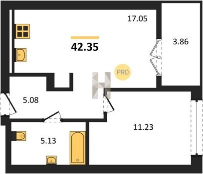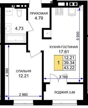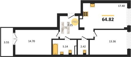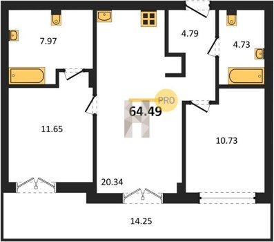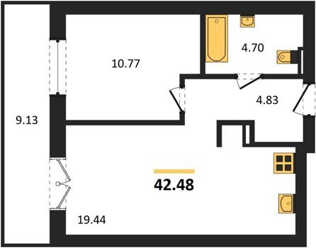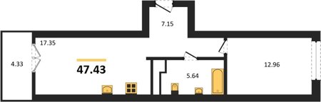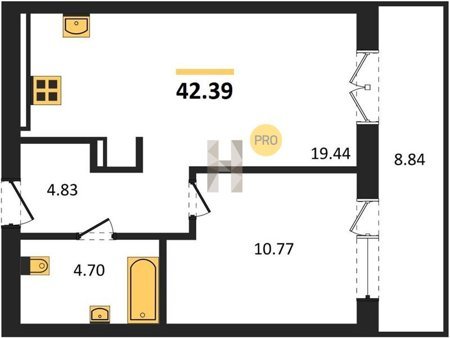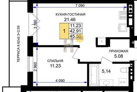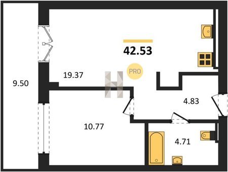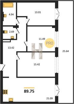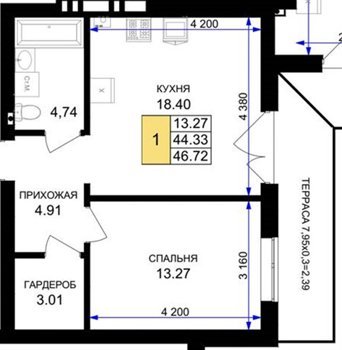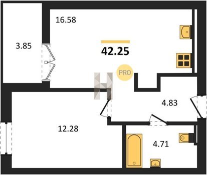 Площадь от 42.25 м2
