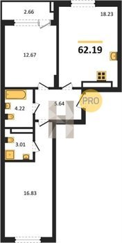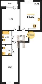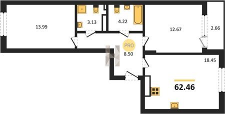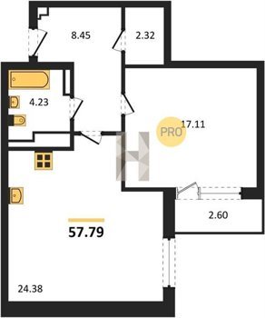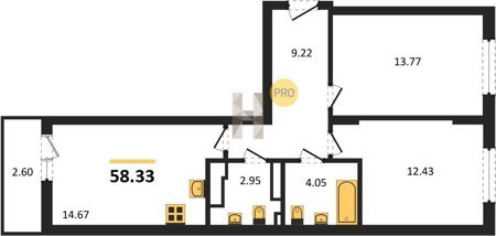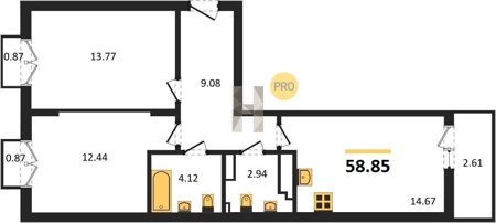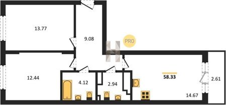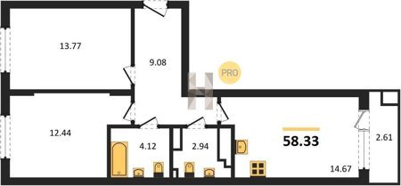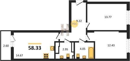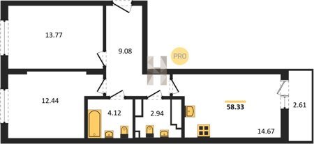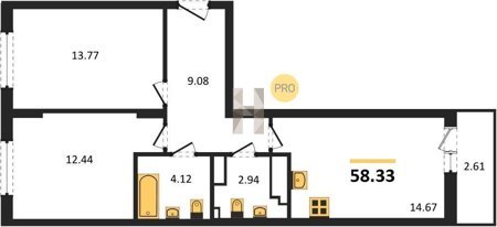 Площадь от 58.33 м2