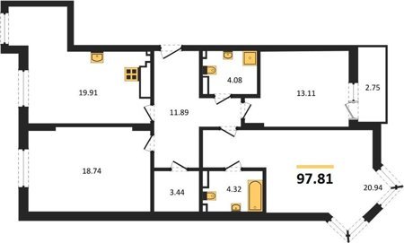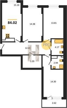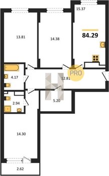 Площадь от 84.02 м2