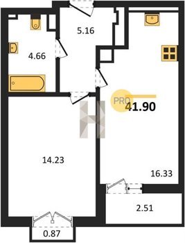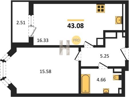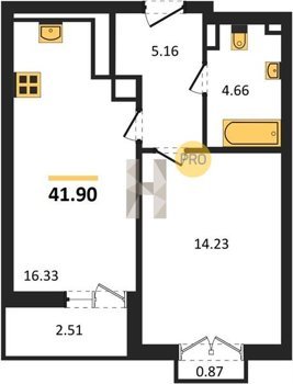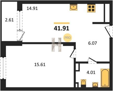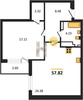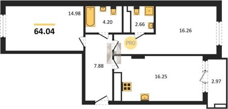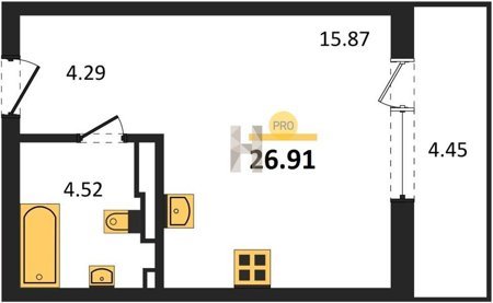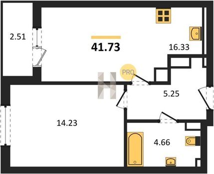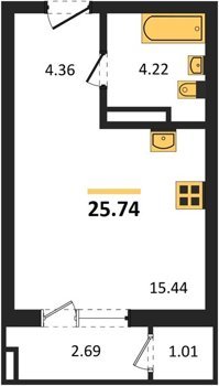 Площадь от 25.74 м2