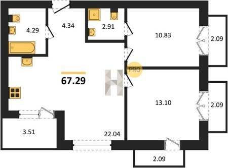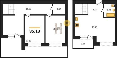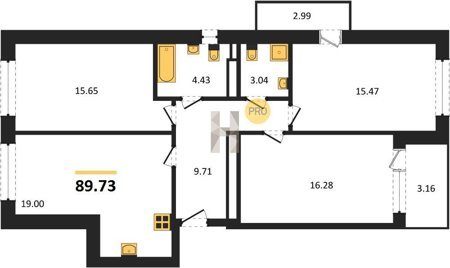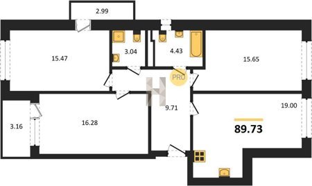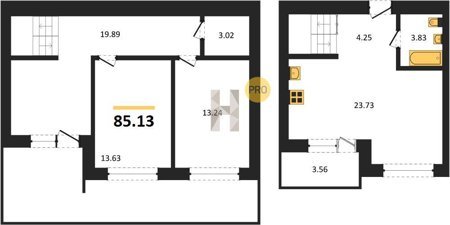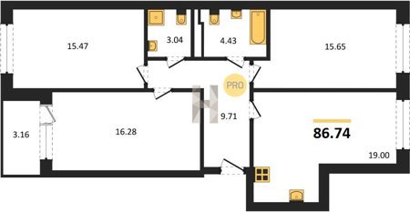 Площадь от 86.74 м2