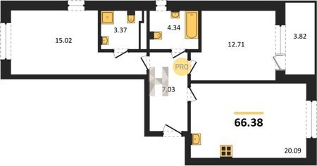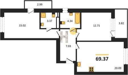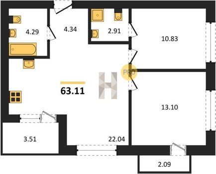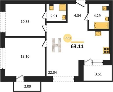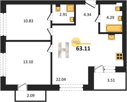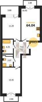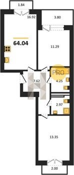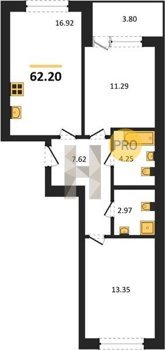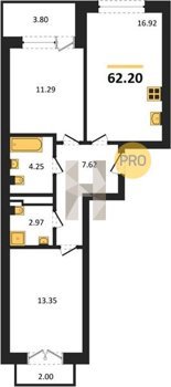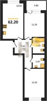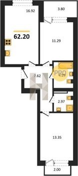 Площадь от 62.2 м2